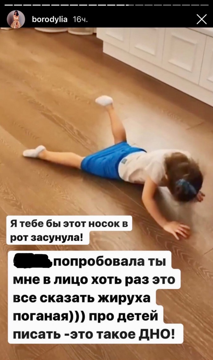 Ксения крайне агрессивно отреагировала на это замечание. В переписках, что выложила Бородина никто не оскорблял ребенка, а вот над чистотой в её доме изрядно посмеялись. Но ведущая тут же перешла на личности.