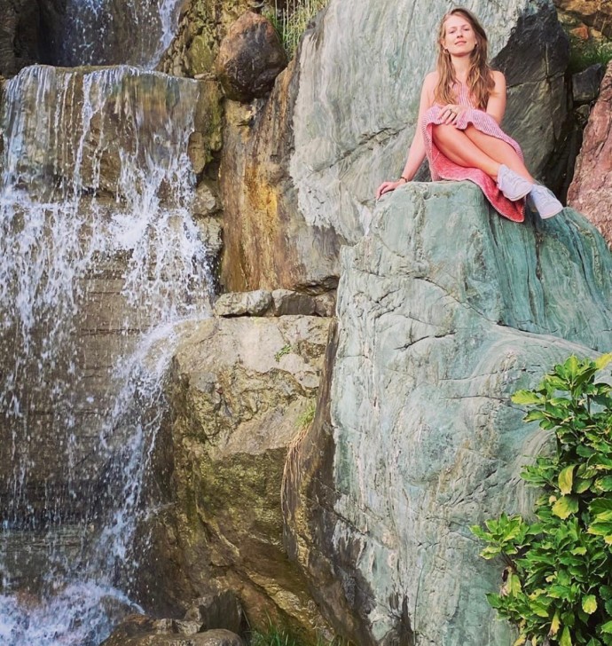 "Посидеть у водопада и успокоиться. Может поэтому у японцев везде водопады... Я, за неимением водопада, хожу успокаиваться в холодильник", - подписала Софья кадр.