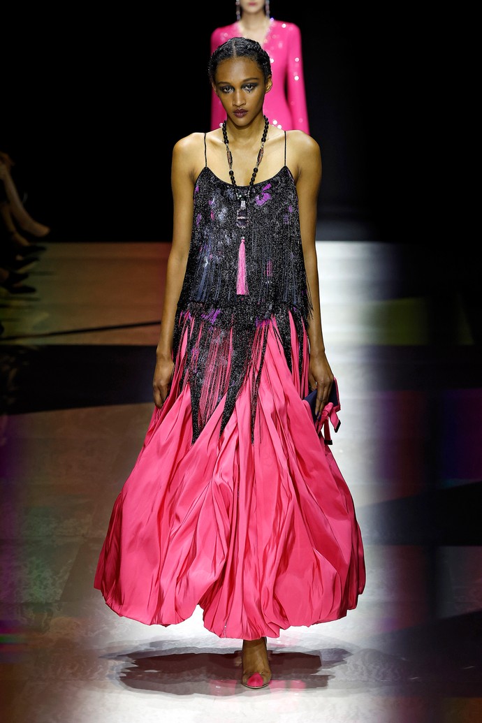 Модельный дом Giorgio Armani не придумал ничего нового, как добавить блеска и оголить плечи