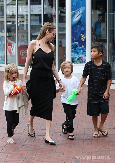 Вместе с мамой наблюдать за морскими обитателями отправились Шайло, Захара, Пакс, Вивьенн и Нокс - не было лишь Мэддокса, и вероятно, он пропустил много интересного, ведь ребята остались в восторге от посещения большого аквариума. Анджелина накупила всем сувенирных игрушек, а чуть позже семья подкрепилась в одном из местных кафе. Актриса как всегда выглядит просто безупречно.