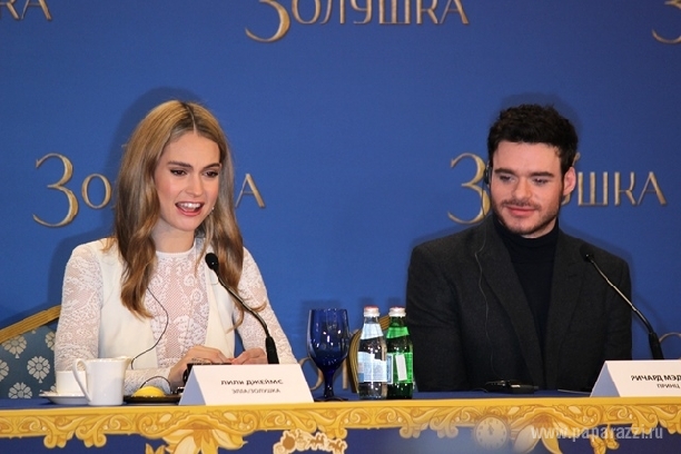 В столицу прибыл режиссер картины Кеннет Брана, а также исполнители главных ролей - актриса Лили Джеймс и актер Ричард Мэдден.