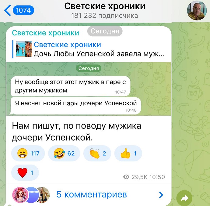 Тем не менее, наверное, за Таню можно было бы порадоваться, но «знающие люди» уже разнесли по ТГ-каналам, что этот брутальный мужчина не совсем по девочкам.