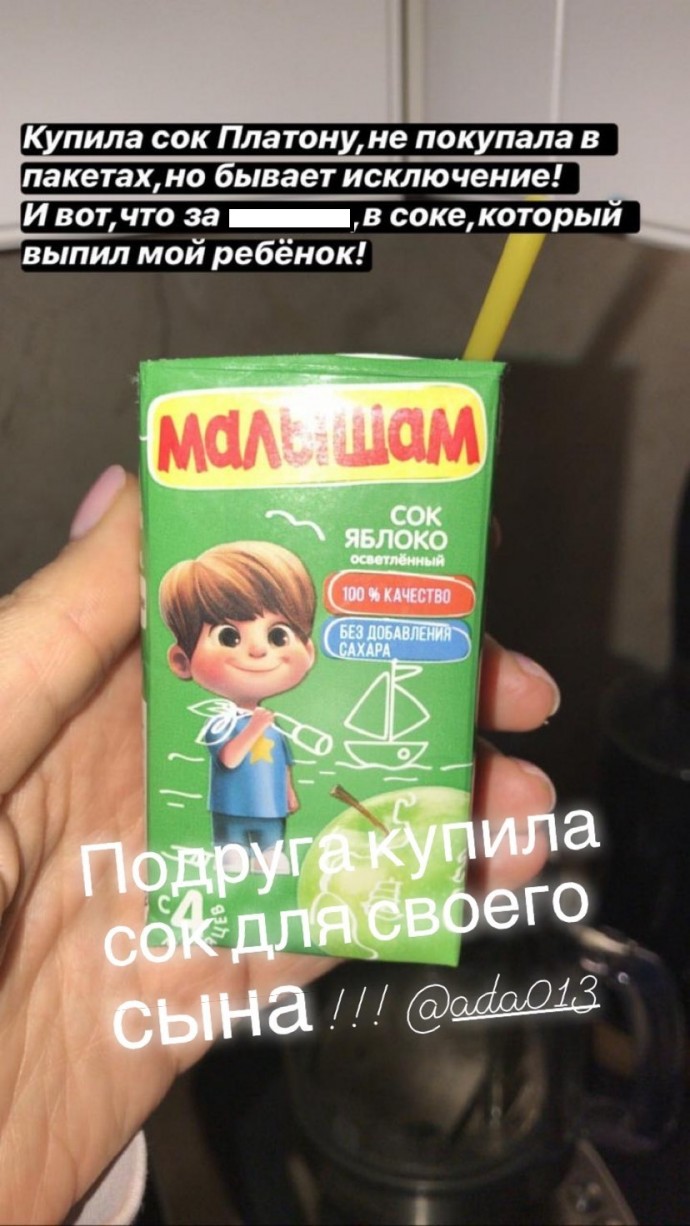 Кудрявцева объяснила, что такой напиток купила своему сыну Платону её подруга и постаралась предостеречь мам от подобных покупок.