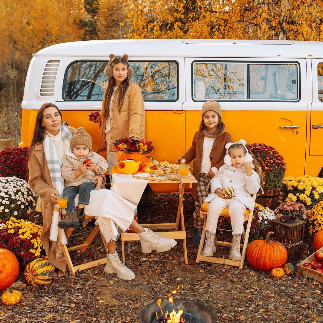 Многодетная мама Оксана Самойлова решила не упускать момент и организовала осеннюю фотосессию себе и детям. Единственного, кого на фото нет - отца семейства - Джигана.