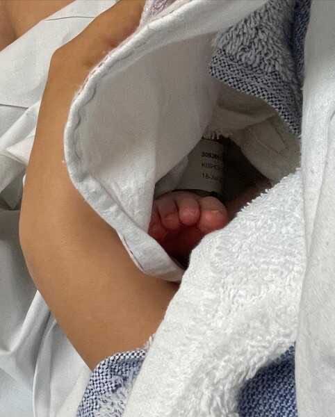 Певица удивила поклонников, опубликовав снимок, на котором позирует с округлившимся животом. Затем она тут же добавила следующее фото - показав ножку новорожденного ребёнка.