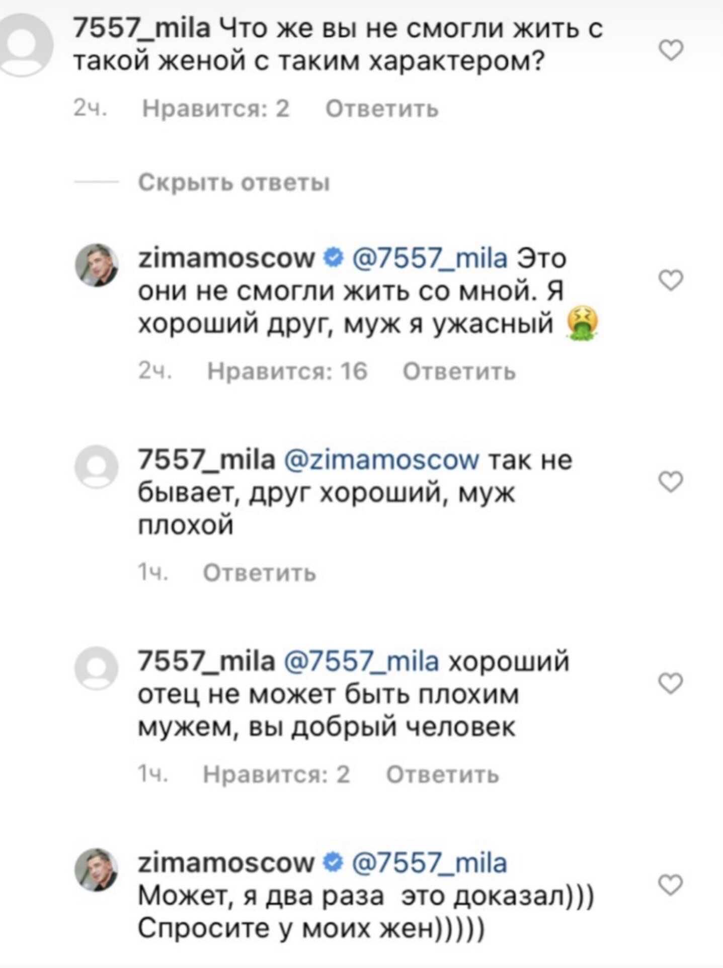 Вероятно, едва сдерживая слезы умиления, подписчицы поинтересовались, как, с таким чудесным характером, Курбан мог не ужиться с жёнами? На что блогер-бизнесмен ответил, что дело не в супругах, а в нем. Он хороший друг, но ужасный муж и дважды это доказал, так как именно благоверные были инициаторами развода с ним.
