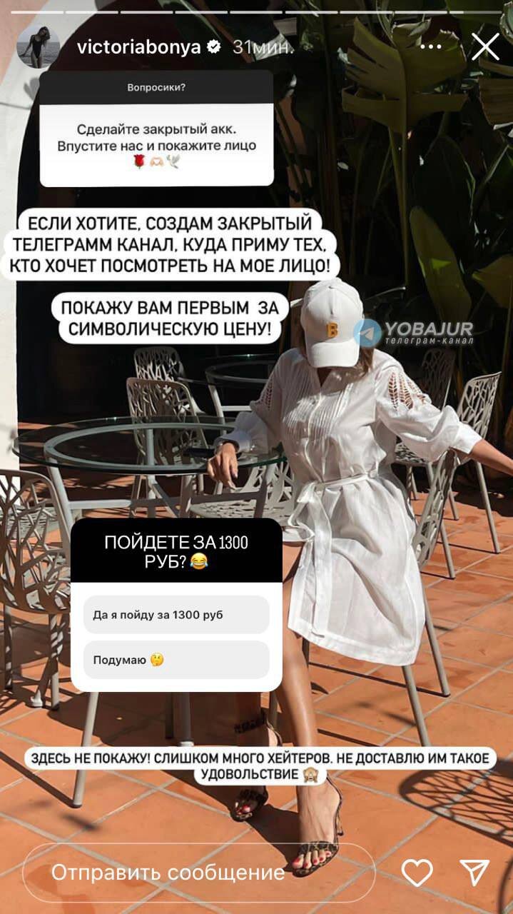 Виктория Боня решила показать своё лицо желающим и назвала цену