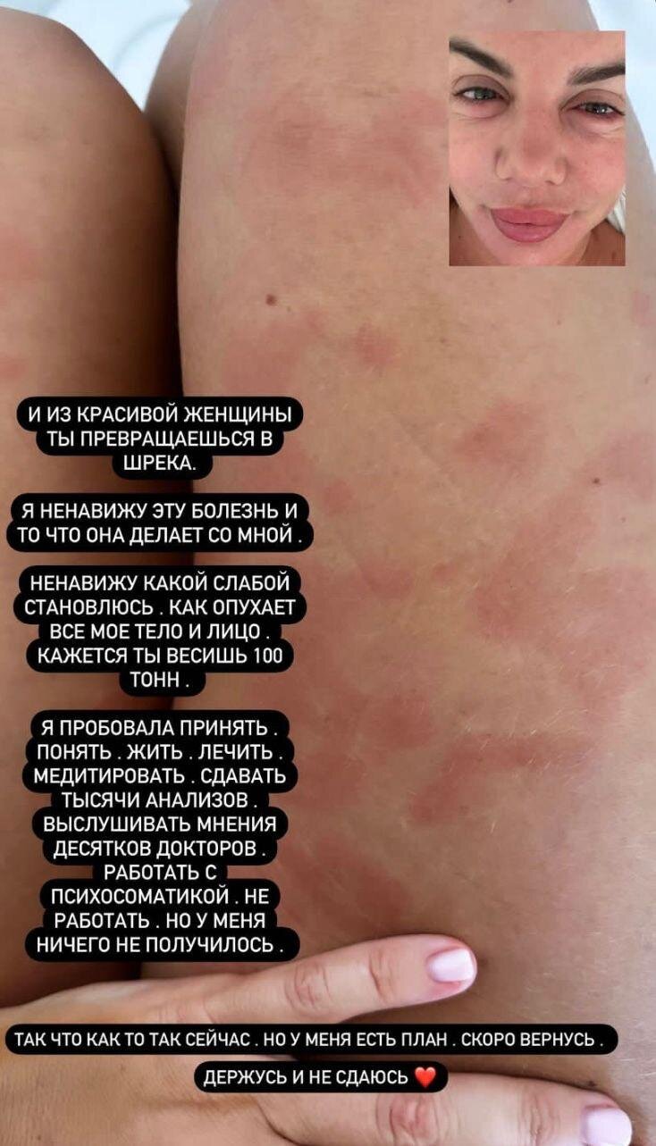 В этот раз на Анну Седокову крапивница напала в компании с отеком Квинке.