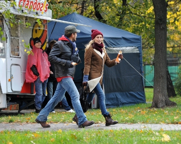 Весь процесс покупки и поедания горячего французского хот-дога был заснят на камеру, так же как и прогулка Дайан по осенним московским улицам в компани актера Дэни Буна.