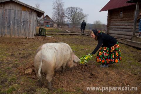 В июньском номере журнала GQ гламурная дива предстает в несколько неожиданном образе. Направившись в гости к Герману Стерлигову, Ксения променяла гламурные наряды на цветастую и юбку и резиновые сапоги, а светским беседам предпочла общение со свиньей...